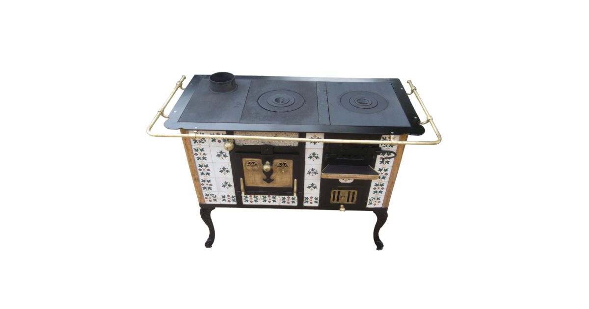 Ez a gyönyörű, restaurált Pannónia antik sparhelt a magyar népi hagyományok legszebb darabja. Egyedi, kézzel festett csempékkel díszített, és díszes öntöttvas lábain áll. Nem csak gyönyörű dísze lesz otthonának, de funkcionális konyhai eszközként is szolgálhat.
