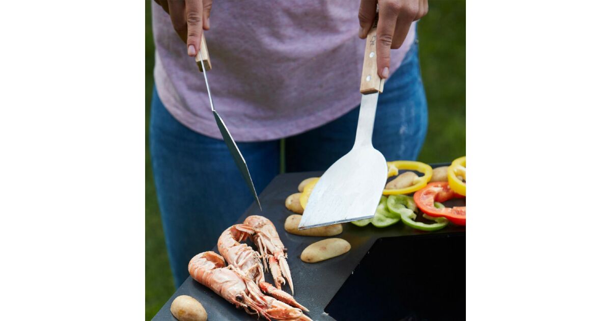 Két darab rozsdamentes acélból készült, praktikus plancha forgató, mely megkönnyíti az ételek forgatását a grillen. A fa nyél kényelmes fogást biztosít, a 100% FSC minősítés pedig a környezettudatosságot garantálja.