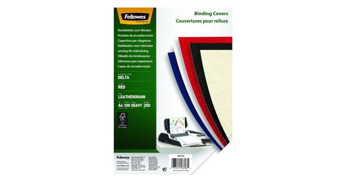 A FELLOWES Delta bőrhatású hátlapjai tökéletesek spirálkötéshez, biztosítva a professzionális és elegáns megjelenést dokumentumaid számára. A piros, bőrhatású felület emeli a prezentációk és jelentések színvonalát.
