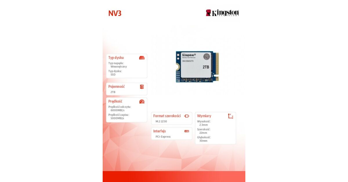 Kingston Technology NV3 2 TB M.2 PCI Express 4.0 NVMe 3D NAND Belső SSD meghajtó