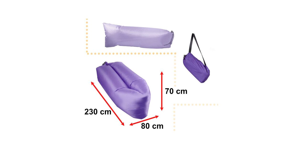 Ezt a terméket így is ismerheted: Önfelfújó matrac "Lazy Bag" típusú nyugágy, 230 x 70 cm, lila szín, kempingezéshez, strandra vagy medencéhez