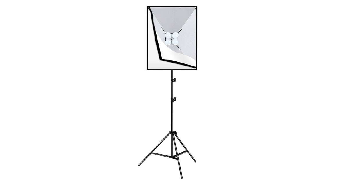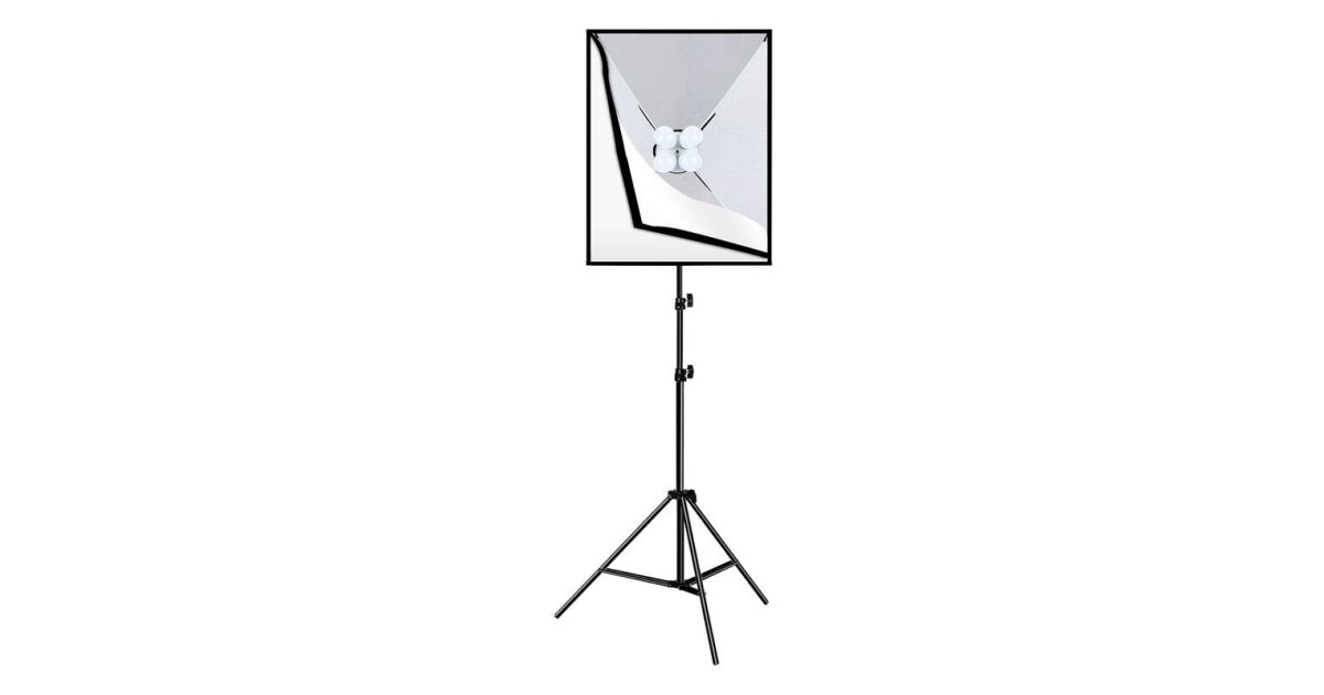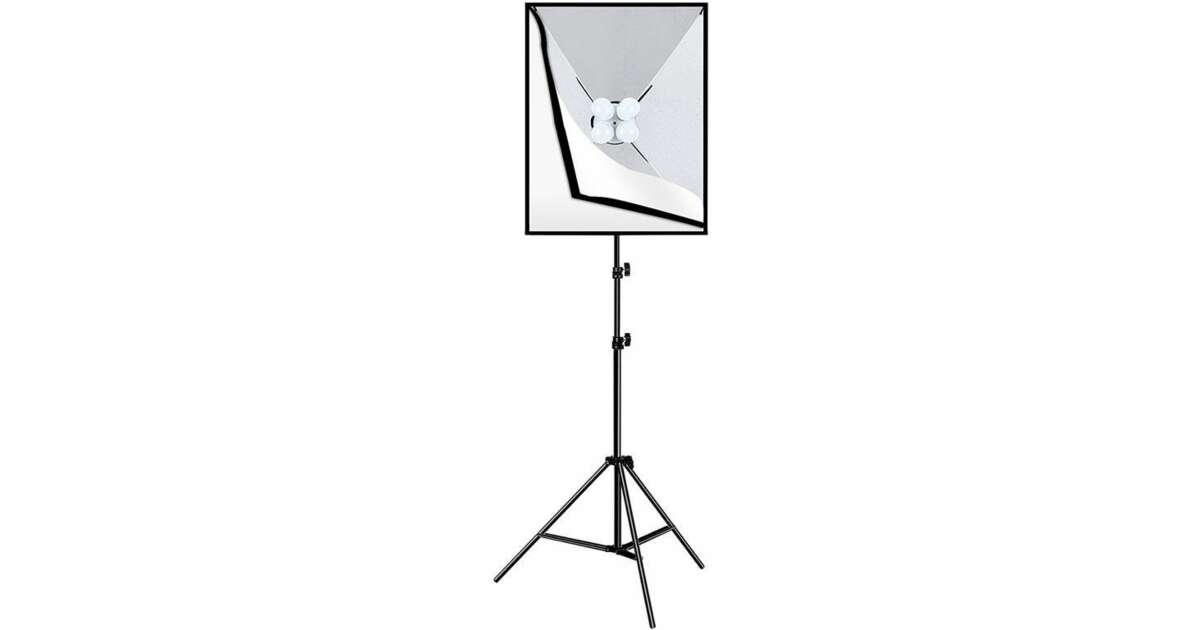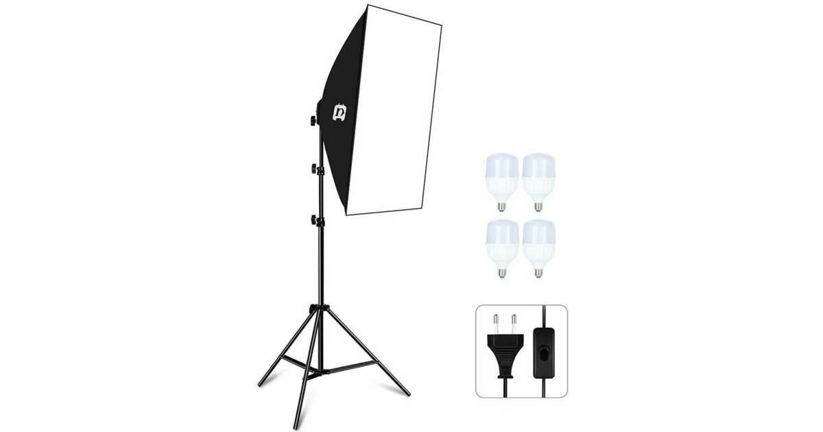 - 50 x 70 cm-es softbox: Kiváló minőségű, ezüst fóliával bevont szövetből készült, amely lágy, egyenletes fényt biztosít, és kiküszöböli a kemény árnyékokat. Könnyen összeszerelhető és szétszedhető.