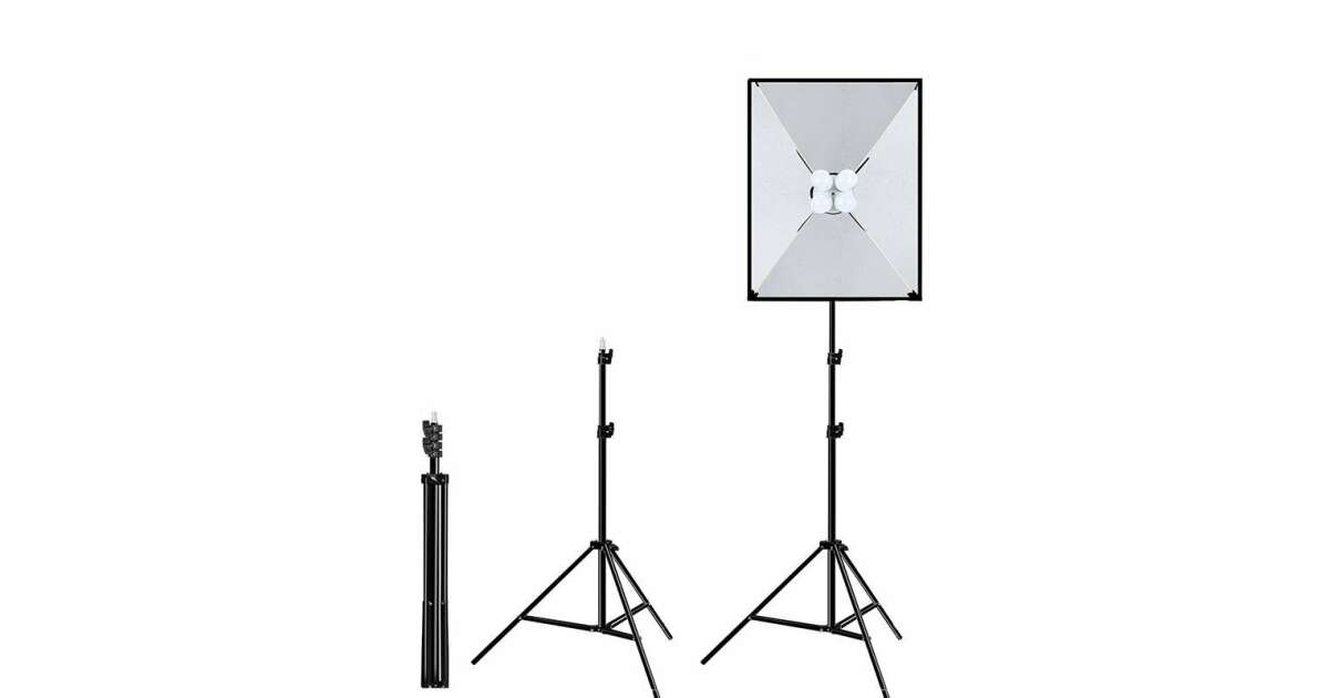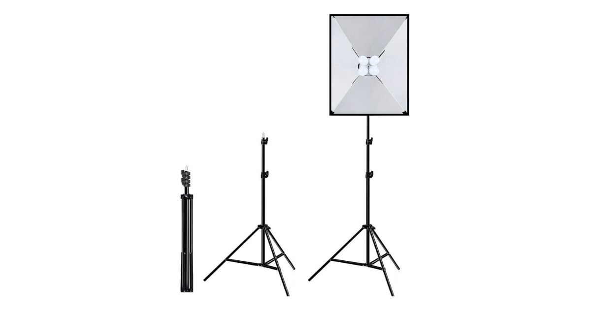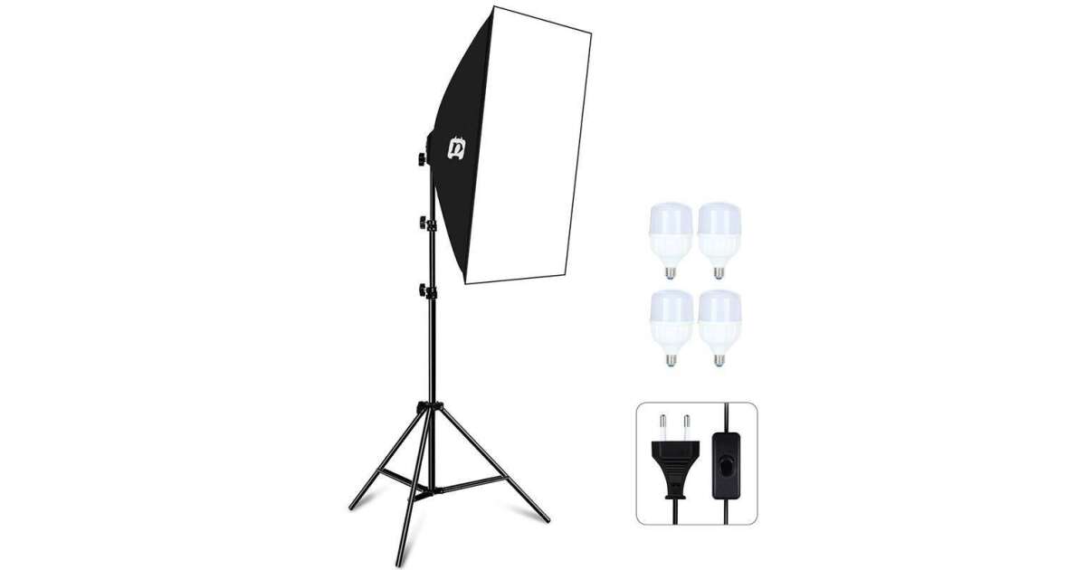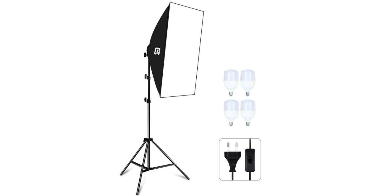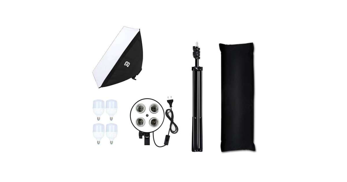 - 50 x 70 cm-es softbox: Kiváló minőségű, ezüst fóliával bevont szövetből készült, amely lágy, egyenletes fényt biztosít, és kiküszöböli a kemény árnyékokat. Könnyen összeszerelhető és szétszedhető.