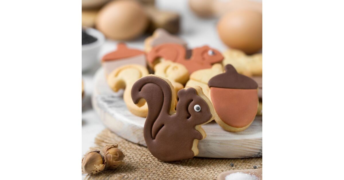 - 2 darabos készlet: Tartalmaz egy mókus és egy makk formájú kiszúrót.