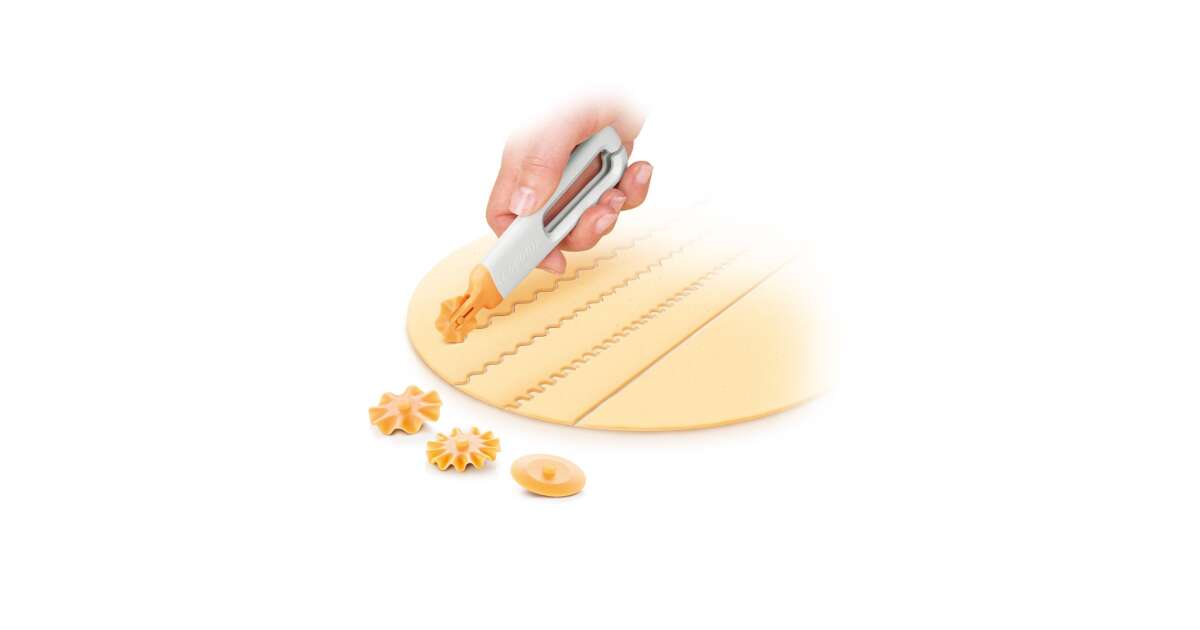 Ez a praktikus tésztavágó négy cserélhető kerékkel rendelkezik, így egyenes vagy hullámos szélű tésztát is könnyedén készíthet. A kiváló minőségű, ellenálló műanyagból készült eszköz bármilyen felületen használható, anélkül, hogy károsítaná azokat.