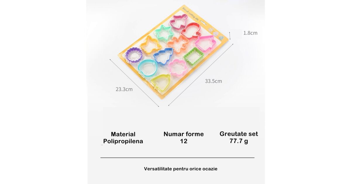 Ez a 12 darabos süteményforma készlet lehetővé teszi, hogy finom és gyönyörűen díszített desszerteket készíts bármilyen alkalomra. A tematikus partiktól a egyszerű kényeztető pillanatokig ezek a formák kreativitást adnak a konyhádnak.