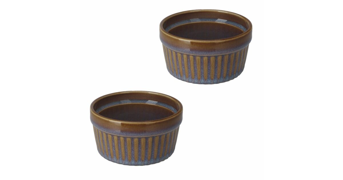 Két darab elegáns, barna kerámia ramekin, ideális creme brulee, sütemények, vagy más apró desszertek sütéséhez és tálalásához. A 9,5x5 cm-es mérete és a 200 ml-es űrtartalma tökéletes adagokat biztosít. A bordázott kialakítás elegáns megjelenést kölcsönöz.