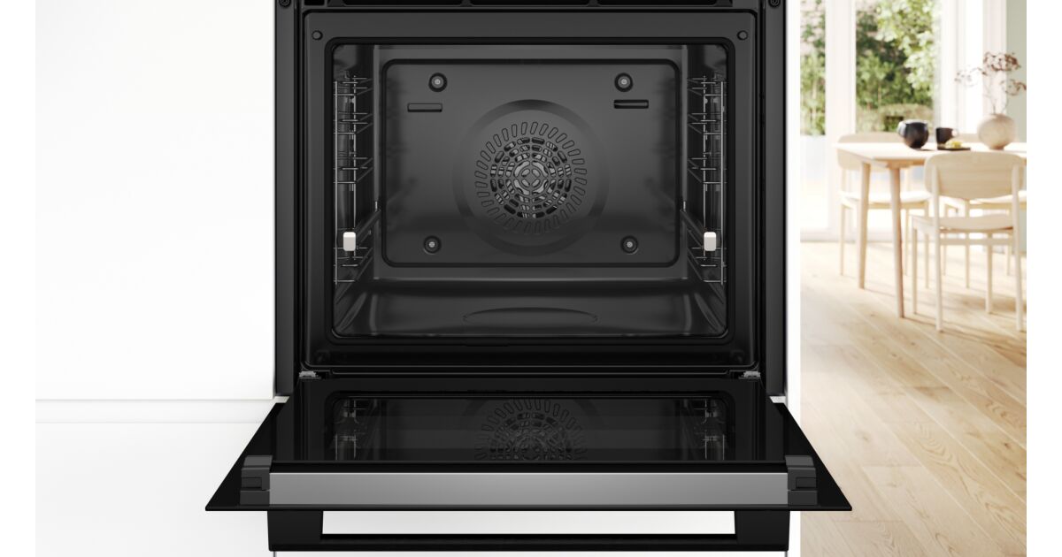 BOSCH HBA372EB4 Önállóan beépíthető sütő, Serie4, fekete, 71 l, 7 funkció, 3D hőlégbefúvás, A+, pirolitikus öntisztítás, AutoPilot10, AirFry sütési mód (AirFry tepsi tartozék), teleszkópos sütősín vásárlás:
