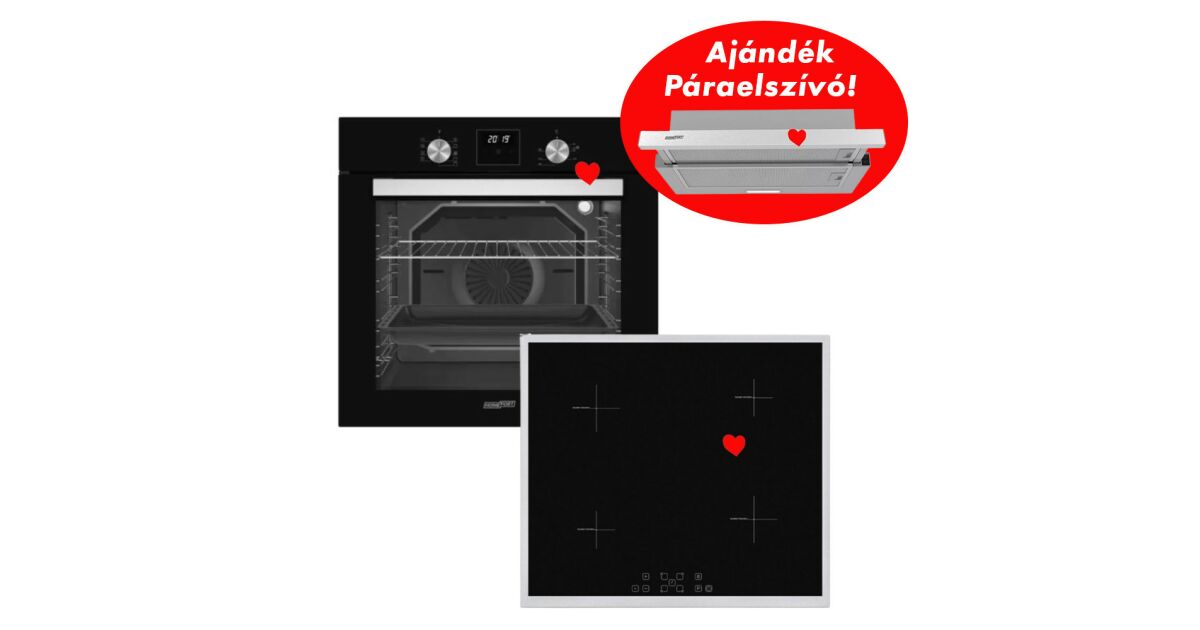 Ez a HOMEFORT szett ideális választás modern konyhájába. A beépíthető sütő és indukciós főzőlap kombinációja nem csak stílusos, de praktikus is, ráadásul egy ajándék páraelszívóval érkezik!