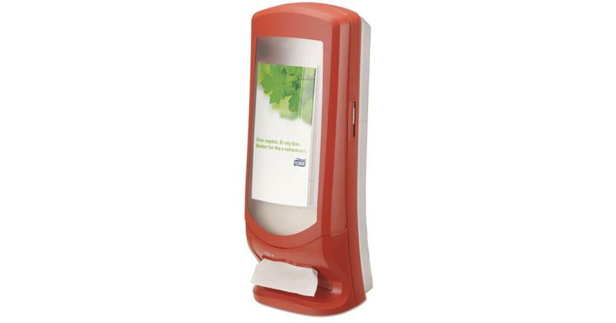 A TORK Xpressnap szalvéta adagoló egy elegáns és praktikus megoldás éttermek, kávézók és egyéb vendéglátóipari egységek számára. A Signature line vörös színű adagolója nem csak a szalvéták higiénikus tárolását biztosítja, hanem a környezet esztétikai megjelenését is javítja.