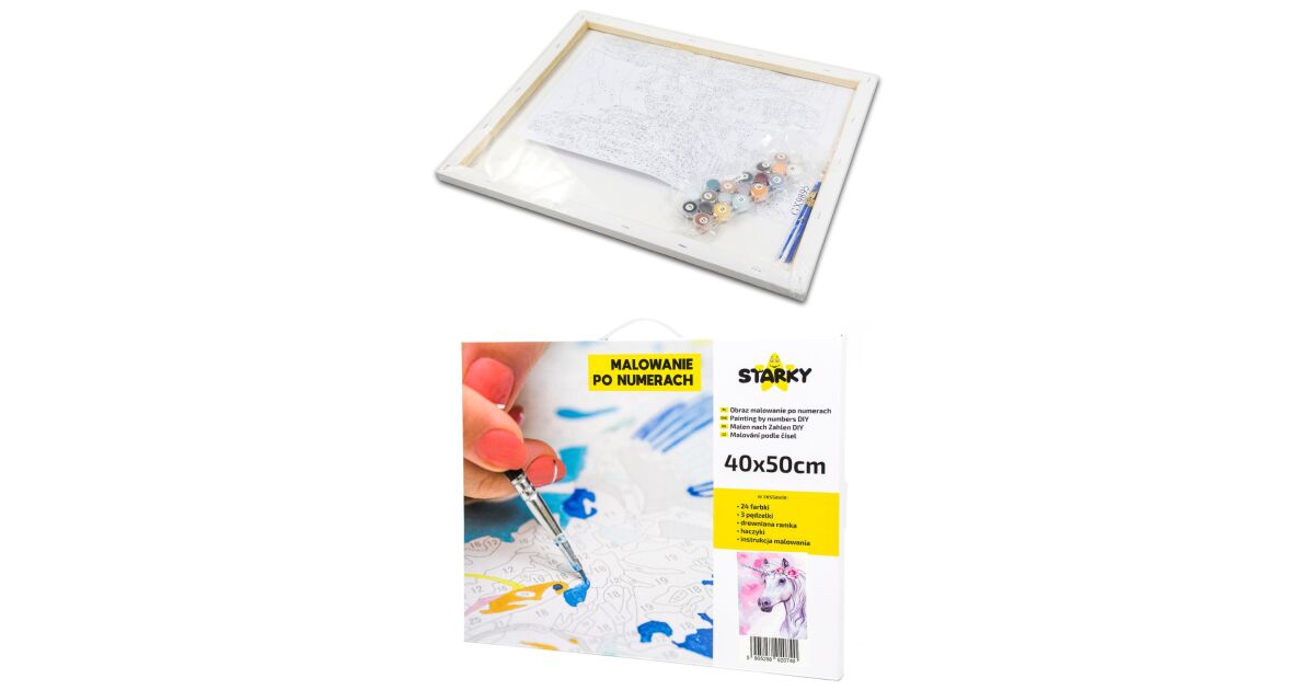 - Előnyomott vászon: Kiváló minőségű, pamut vászon, fa keretre feszítve, számozott mezőkkel.