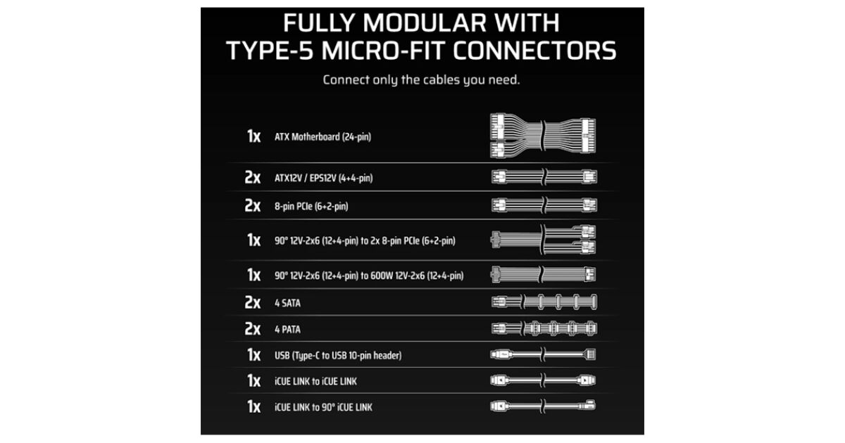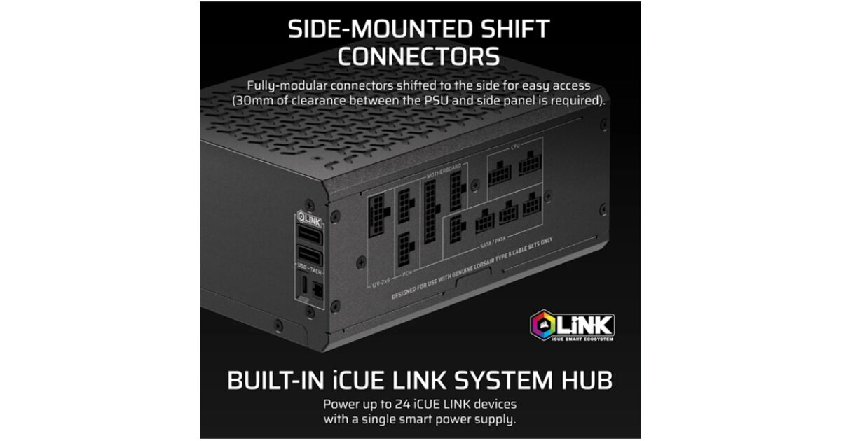 Corsair tápegység moduláris, icue link hxi shift series hx1200i shift, 1200w, cybenetics platinum CP-9020267-EU