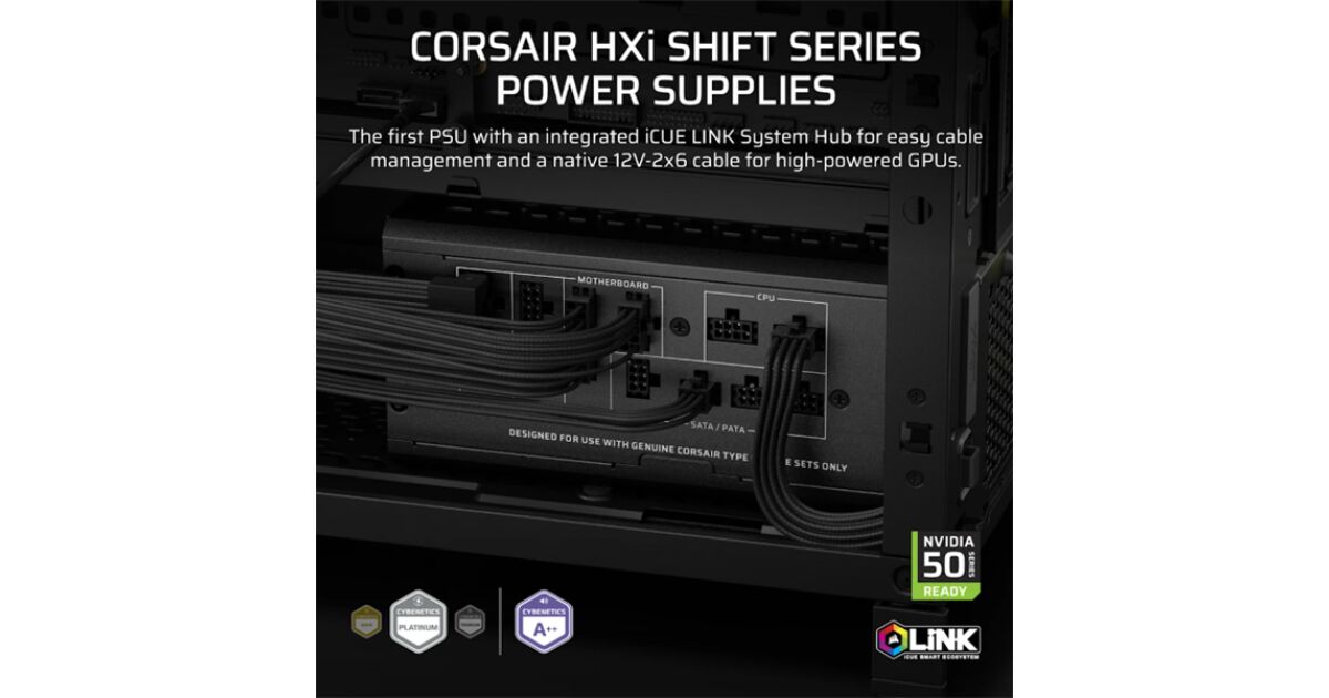 Corsair tápegység moduláris, icue link hxi shift series hx1200i shift, 1200w, cybenetics platinum CP-9020267-EU leírása