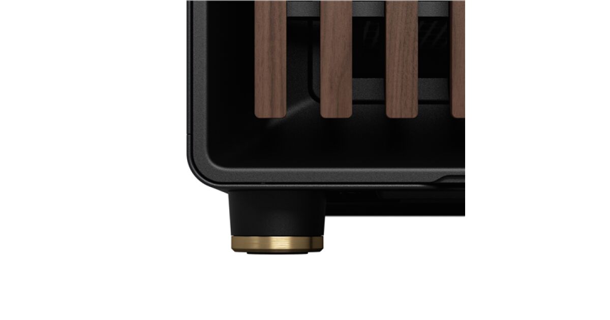 - Elegáns dizájn: Valódi dió- vagy tölgyfa panelek és sárgaréz részletek adják a ház egyedi megjelenését. Tökéletesen illeszkedik modern lakókörnyezetbe.