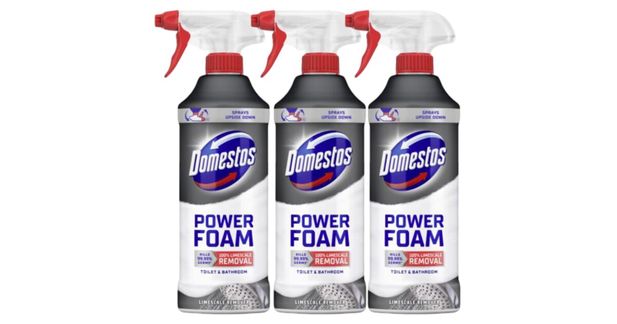 Ezt a terméket így is ismerheted: Domestos Power Foam WC és Fürdőszoba Tisztító Spray 3x435ml