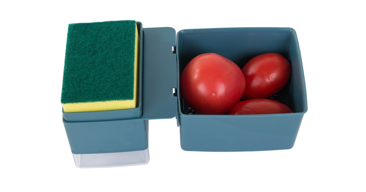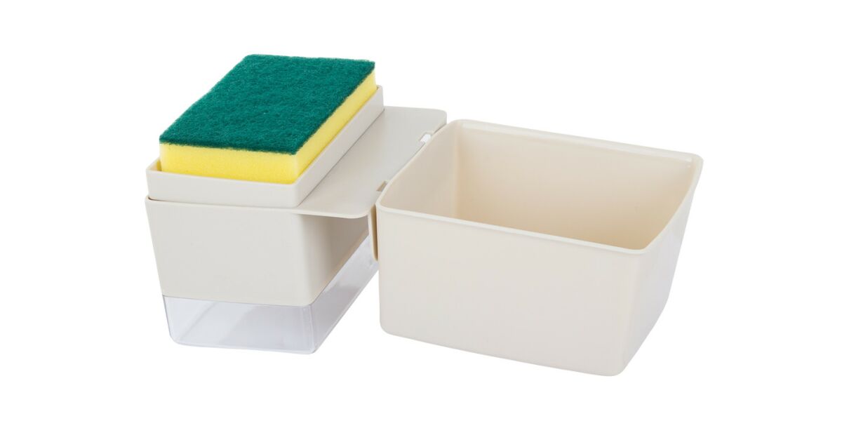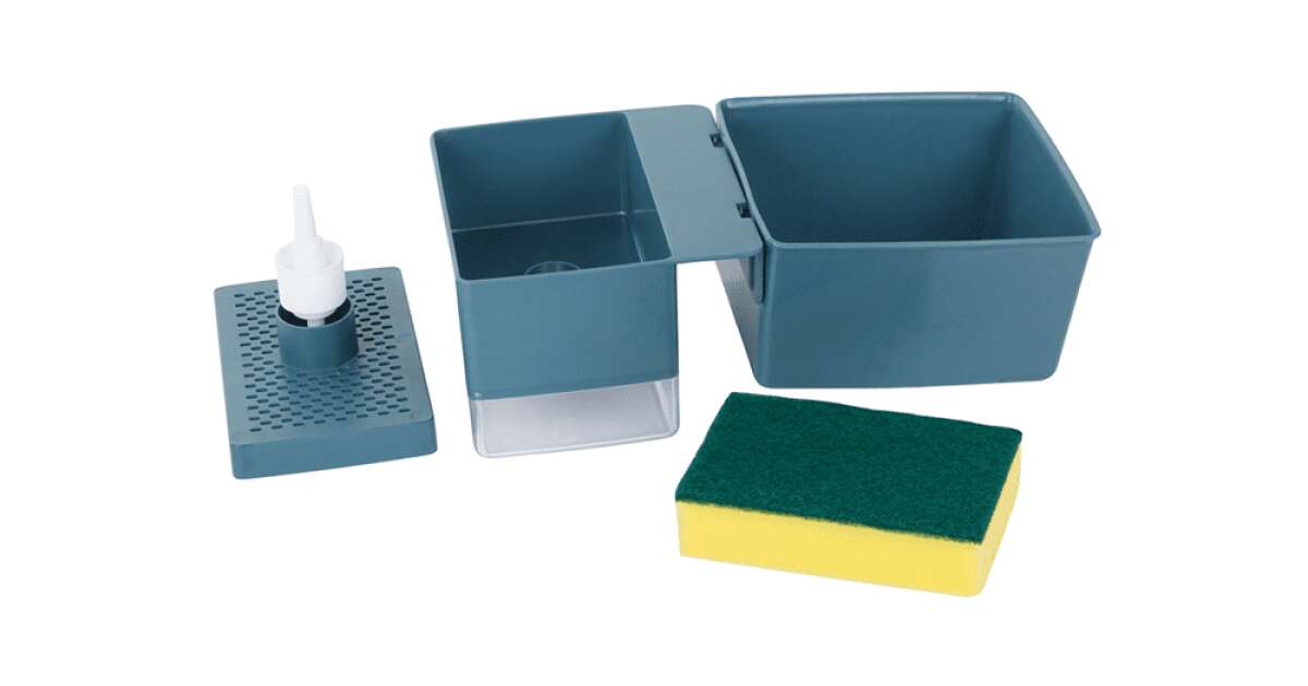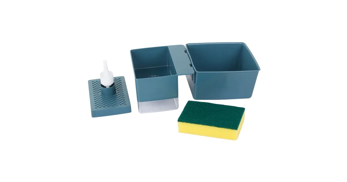 Ez a kompakt szett tökéletesen ötvözi a szivacs tárolását és a mosogatószer adagolását. A szivacs tartó rekeszben mindig kéznél van a tiszta szivacs, míg a mosogatószer adagoló segítségével könnyedén adagolhatod a szükséges mennyiséget. A szett praktikus és helytakarékos megoldás a konyhában.