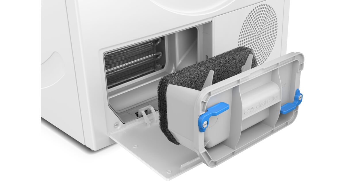 A szárítógép intuitív érintőképernyővel és egyszerű szűrőtisztító rendszerrel van felszerelve. Az antivibrációs kialakításnak köszönhetően rendkívül csendes és stabil, így bárhol elhelyezheted otthonodban.