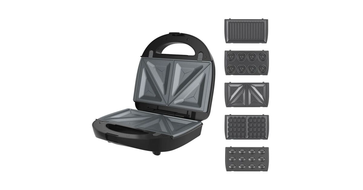 - 🔥 5 cserélhető sütőlap: Szendvics, gofri, mini fánk, muffin és grill lapok a változatos ételekhez.