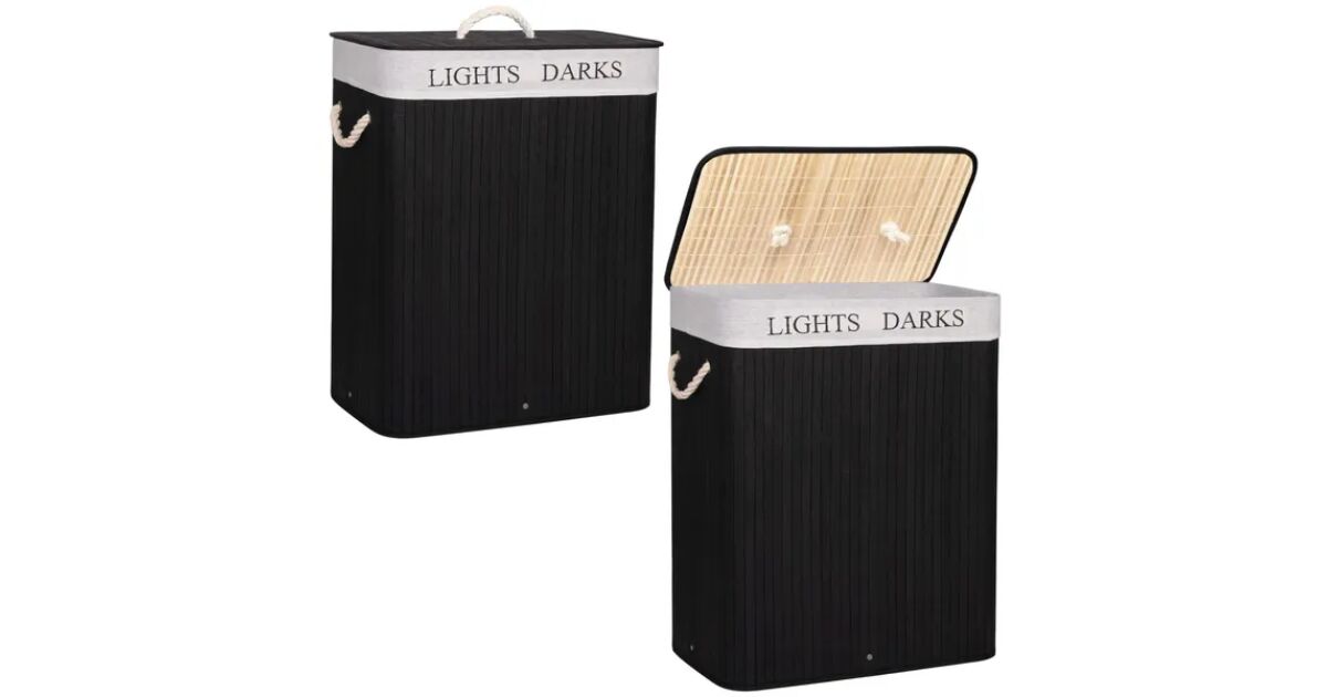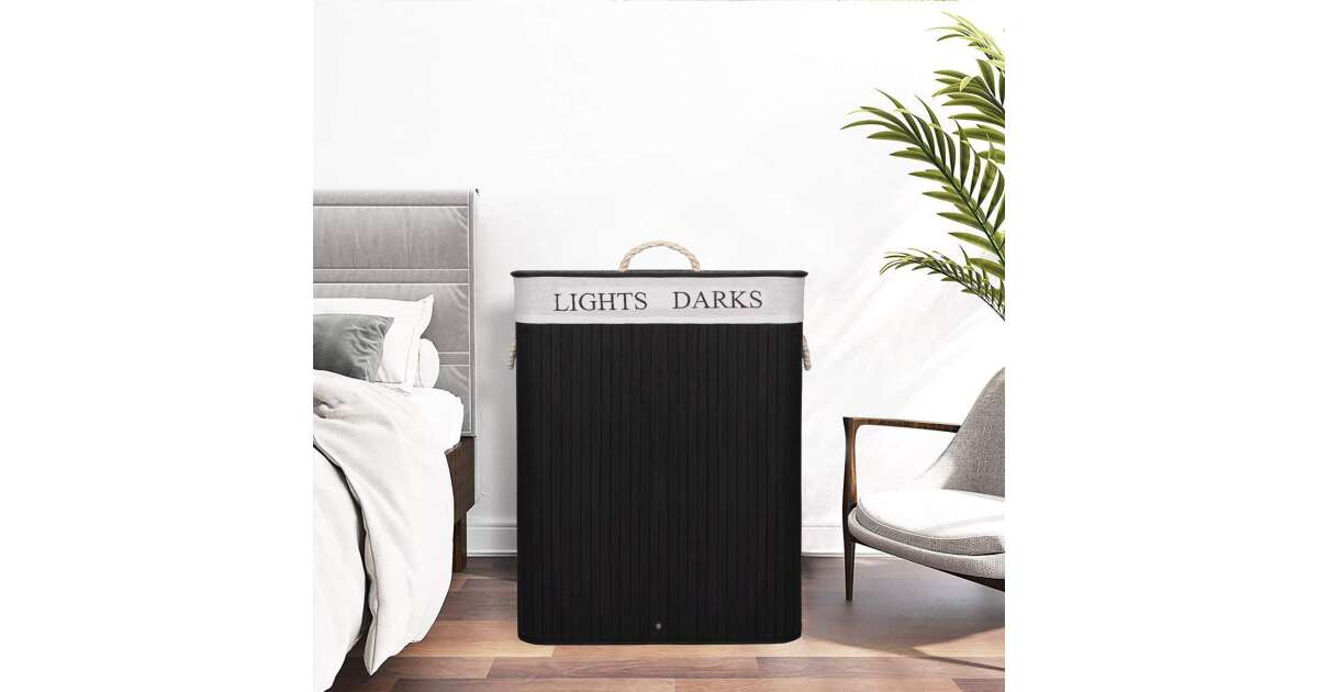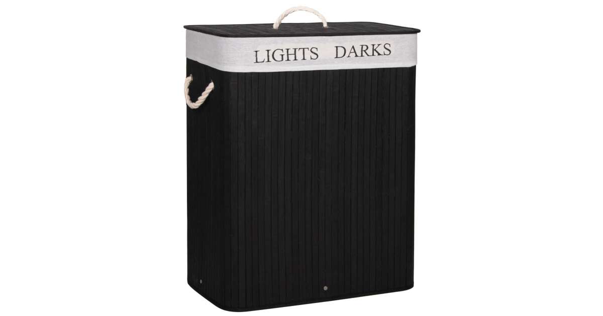Elegáns és praktikus bambusz szennyeskosár, amely tökéletesen illeszkedik a modern fürdőszobába vagy hálószobába. Két rekeszének köszönhetően könnyedén szétválogathatod a világos és sötét ruhákat. 🧺
