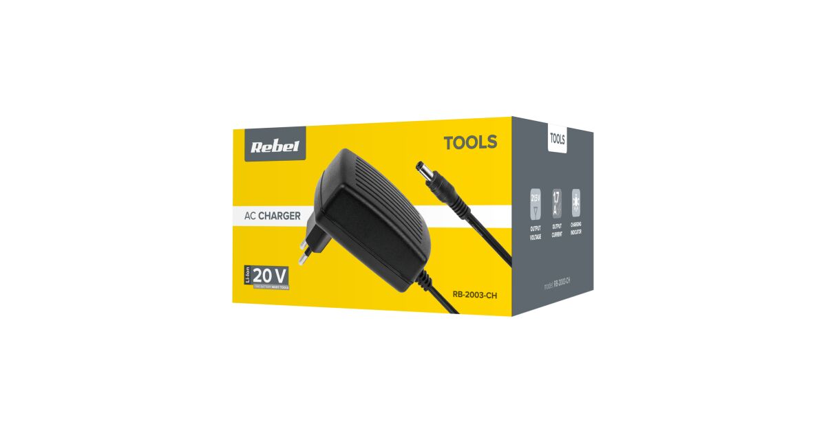 Ezt a terméket így is ismerheted: 20 V-os 2A/4A akkumulátortöltő RB-2001, RB-2002 Rebel Tools akkumulátorokhoz