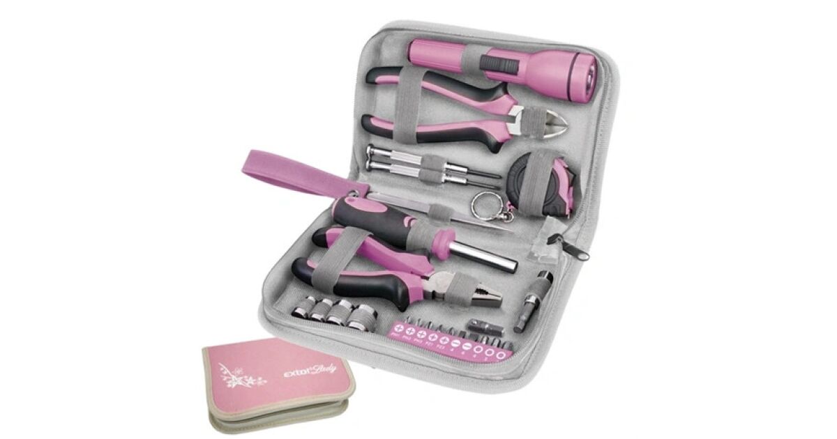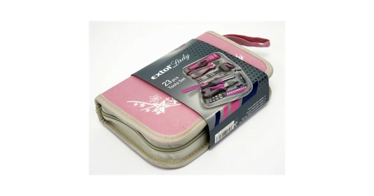 Ez a 23 darabos Extol Lady szerszámkészlet ideális minden nő számára, aki szeret barkácsolni. A rózsaszín színvilág nem csak stílusos, de a készlet tartalma is minden igényt kielégít a ház körüli munkákhoz. Praktikus szövettáskában tárolható, így könnyen hordozható és mindig kéznél van.