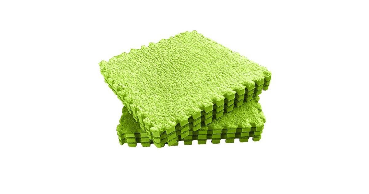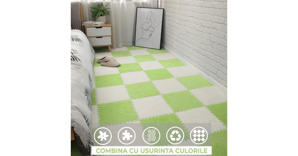 10 db-os puzzle szőnyeg készlet, KeepHome, EVA hab, bolyhos, 30 x 30 x 1 cm, zöld