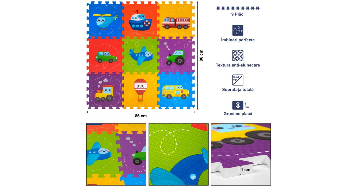 A FizioTab® kirakószőnyeg ideális választás a gyerekszobába, biztonságos és puha felületet biztosít a játékhoz. A színes, járműves minták fejlesztik a kreativitást és a tapintási készségeket.