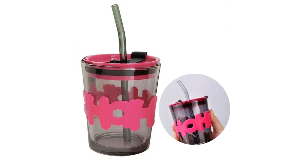 Színes üvegbögre kávéhoz és teához szívószállal és fedővel 300 ml CUP13 leírása