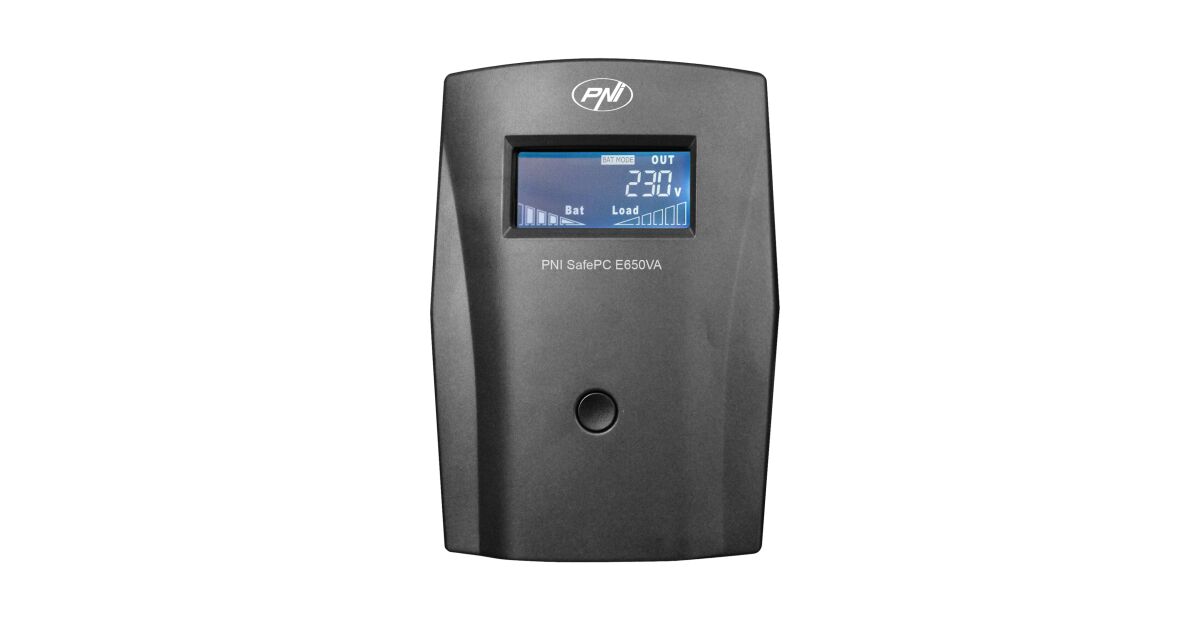 PNI SafePC E650VA UPS, teljesítmény 390 W, 1,8 A, kimenet 2 x 230 V, LCD képernyő akkumulátor 7,2 A, kék Sticky Pad mellékelve leírása
