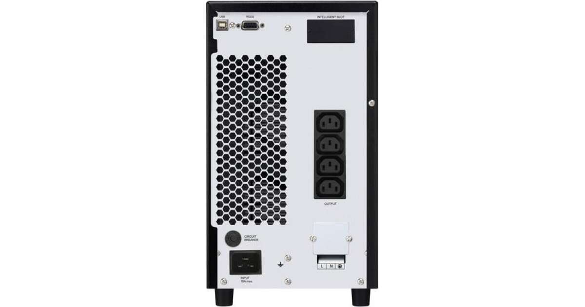 Látszólagos teljesítmény3000 VAValós teljesítmény2400 WattUPS felépítéseOn-lineAkkumulátorra kapcsolás max. ideje0 msBetáplálás fenntartó aljzatok száma és típusa4 x IEC320 C13 (10A)Túlfeszültség védelmes aljzatok száma és típusa4 x IEC320 C13 (10A)Bemeneti csatlakozó típusan/aFenntartási idő 100% terhelésnél5.4 pFenntartási idő 50% terhelésnél13.2 pBemeneti feszültségtartomány az alap módban110-300 VBemeneti feszültség változó tartomány110-300 VHideg startIgenAutomatikus feszültség szabályozó rendszer (AVR)NemSzinusz akkumulátorról való működés közbenIgenKommunikációs portUSB 2.0Adatvonalakat biztosító portN/ALEDLCD kijelzőFigyelmeztető hangjelzésIgenSzámítógépház típusaTowerAlapvető tartozékokIllesztőprogramok a CD-nSzoftver mellékelveViewPower (Shutdown Software)Szélesség190 mmMagasság318 mmMélység421 mmSzínFekete