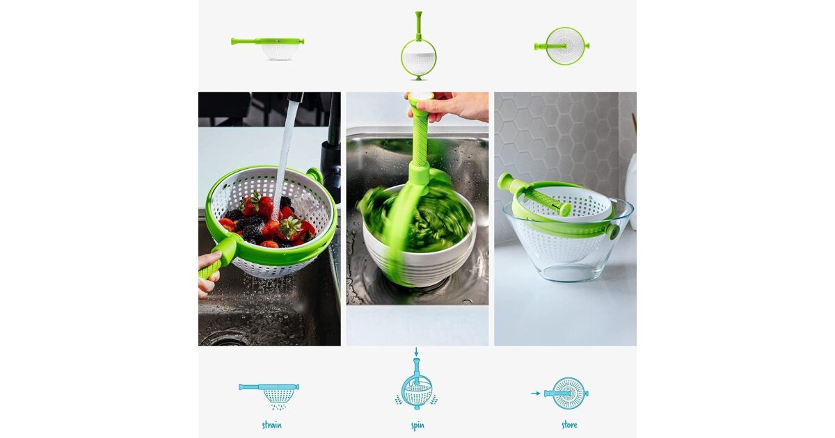 Ez a forgó szűrő tökéletes megoldás kedvenc zöldségeid és gyümölcseid gyors mosásához és szárításához. Innovatív kialakítása segít időt és energiát megtakarítani a konyhában.