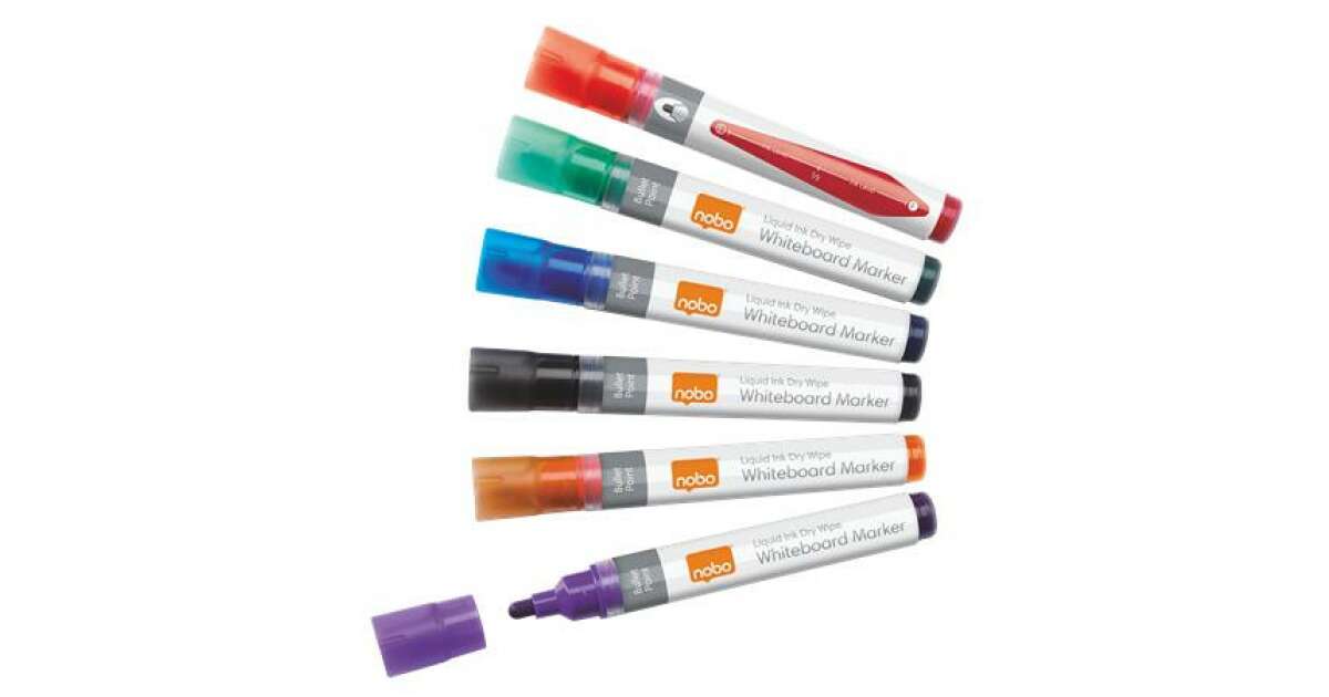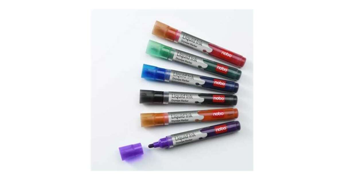 NOBO Folyékonytintás Táblamarker Készlet - 6 db, Szárazon Törölhető leírása