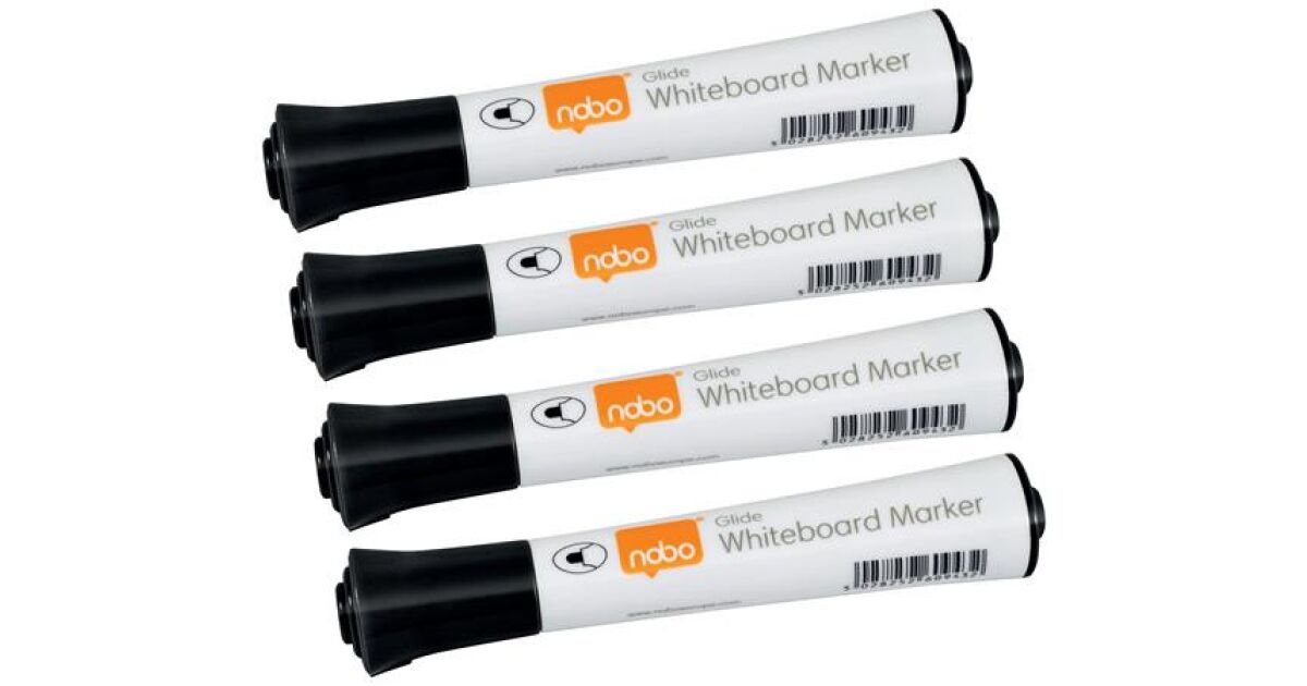 A NOBO Glide fehértábla marker készlet ideális választás irodákba, iskolákba és otthonra egyaránt. Könnyedén írhatsz üveg, zománcozott és más nem porózus felületekre, majd egyszerűen letörölheted.