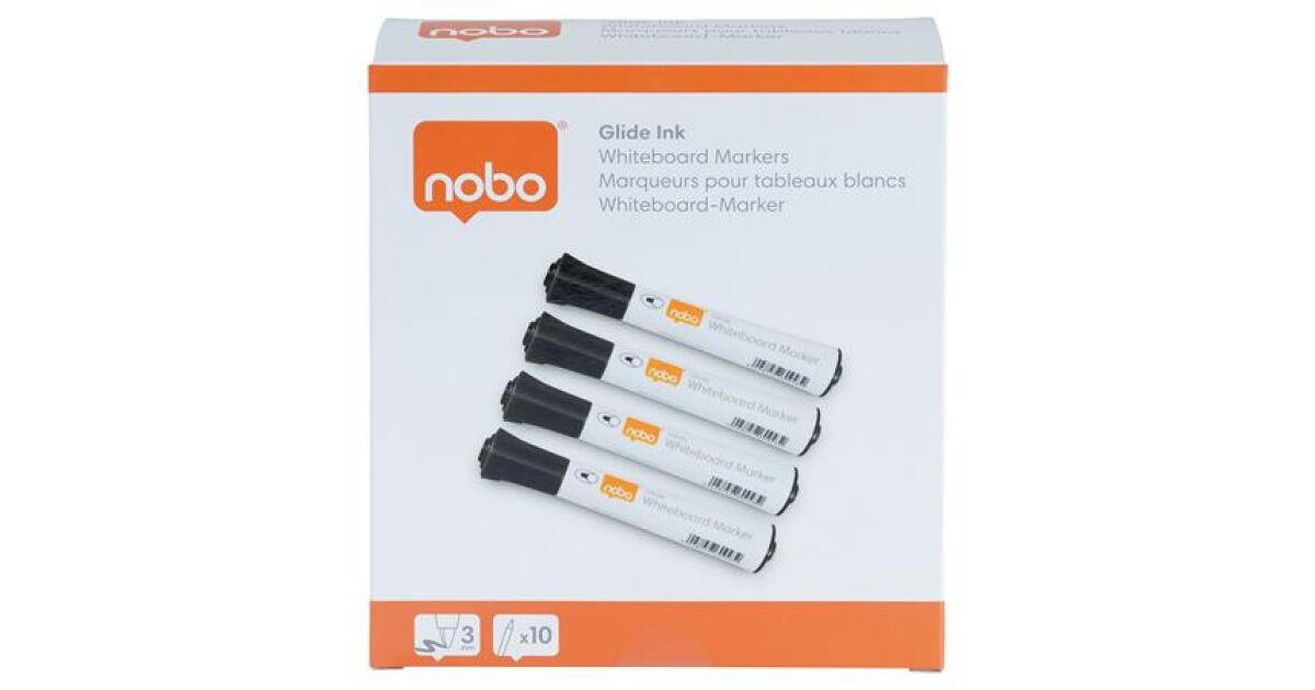 NOBO Glide fehértábla marker készlet (10 db, fekete) 🖋️
