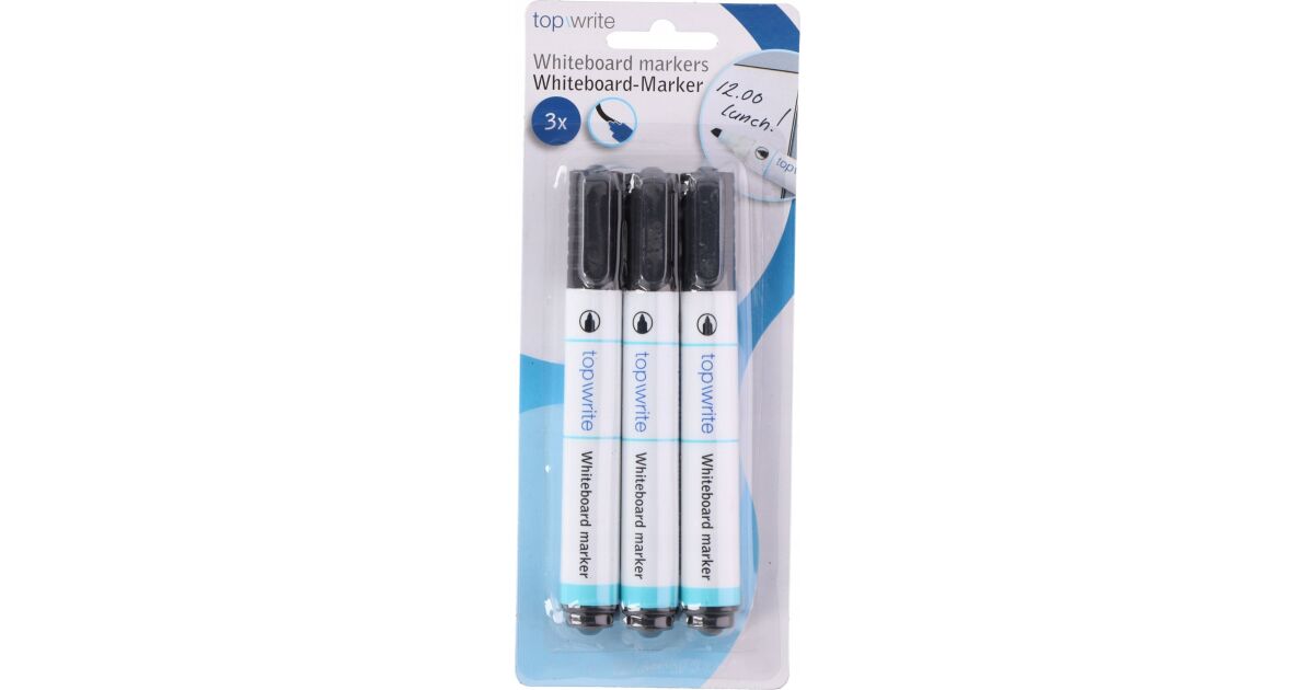 Biztosítsd a kényelmes írást és rajzolást a táblán a 3 darabos Topwrite fekete marker készlet segítségével. Tökéletes irodába, iskolába és otthonra!