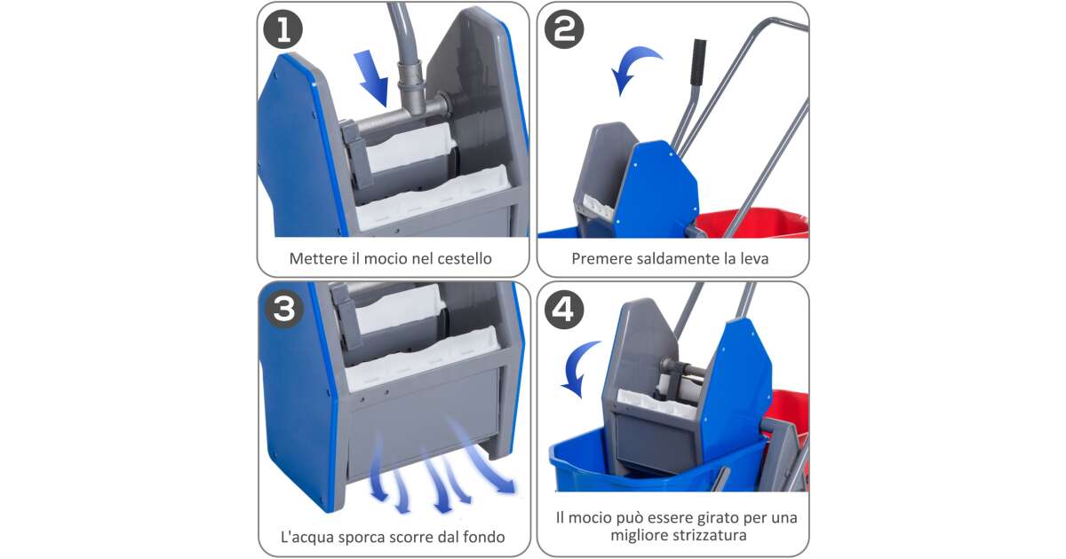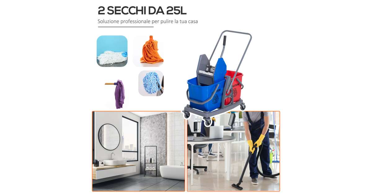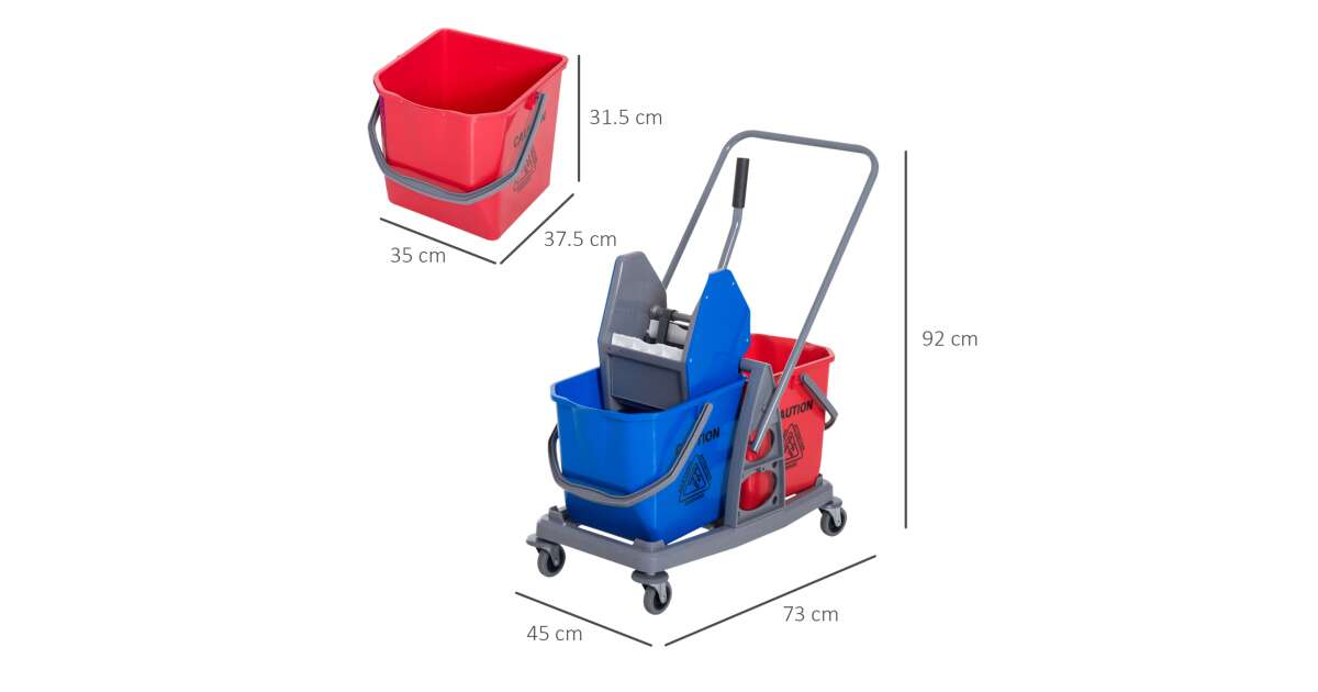 Homcom professzionális tisztító szett, kocsi, 2 db 25 literes vödör, kék-piros vélemények