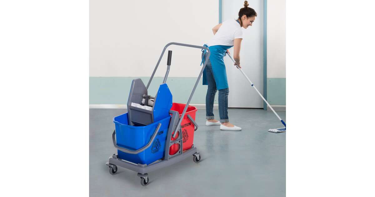 Ezt a terméket így is ismerheted: Homcom professzionális tisztító szett, kocsi, 2 db 25 literes vödör, kék-piros