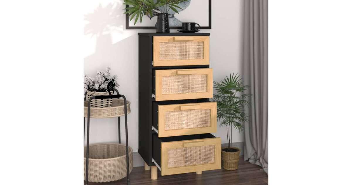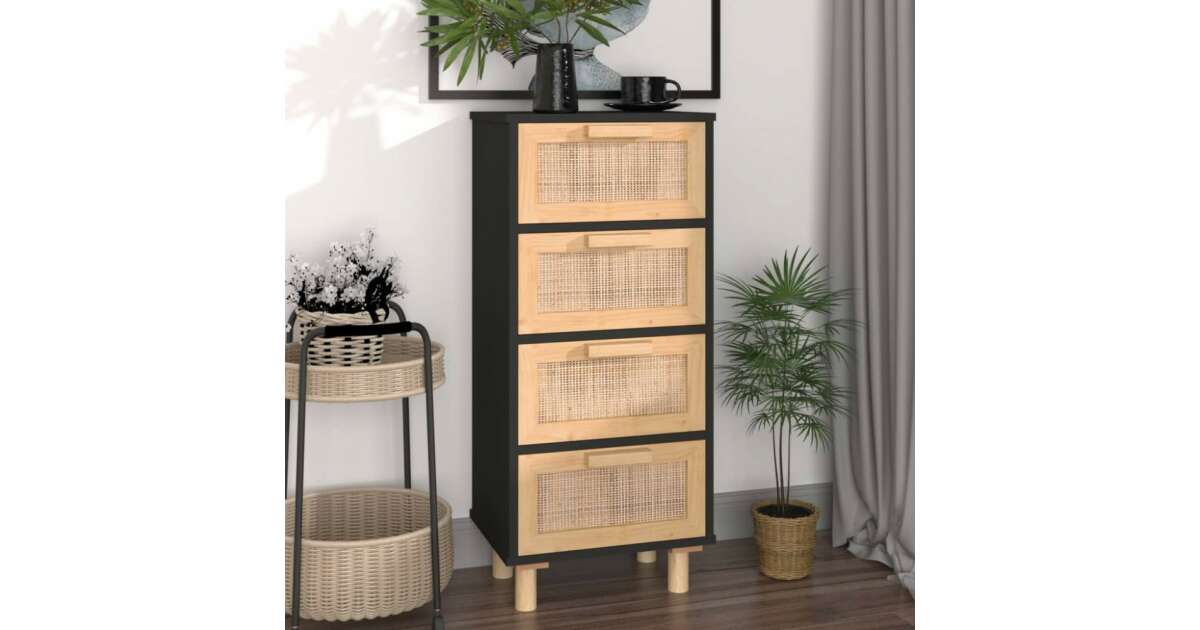 Ezt a terméket így is ismerheted: vidaXL 4 Fiókos Tálalószekrény - Fekete Fa/Rattan - 40x30x90cm