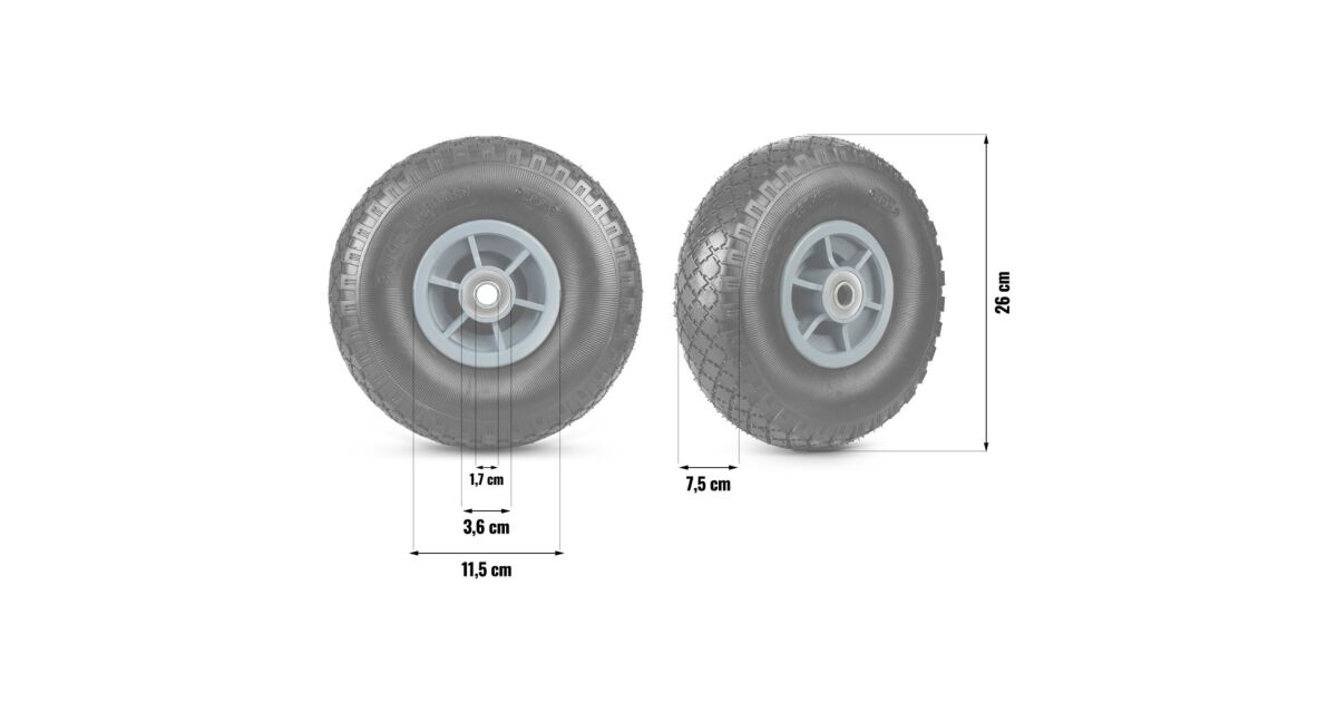 - 26 cm átmérőjű kerék: Ideális méret a legtöbb talicskához és kertészeti eszközhöz.