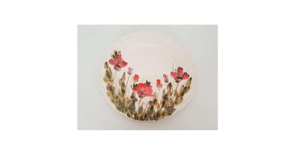 Kézzel festett kerámia tányér pipacsos mintával - 28,5 cm átmérő