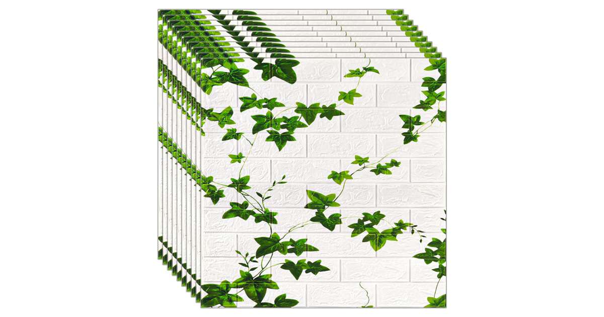 10 db öntapadós 3D tapéta NEXTLY, mennyezetre/falra, tégla design, vízálló, állítható, erős ragasztó, könnyen felszerelhető, 5,3MP fedés, 70x77 cm, fehér, zöld levelekkel, kód 81. vélemények