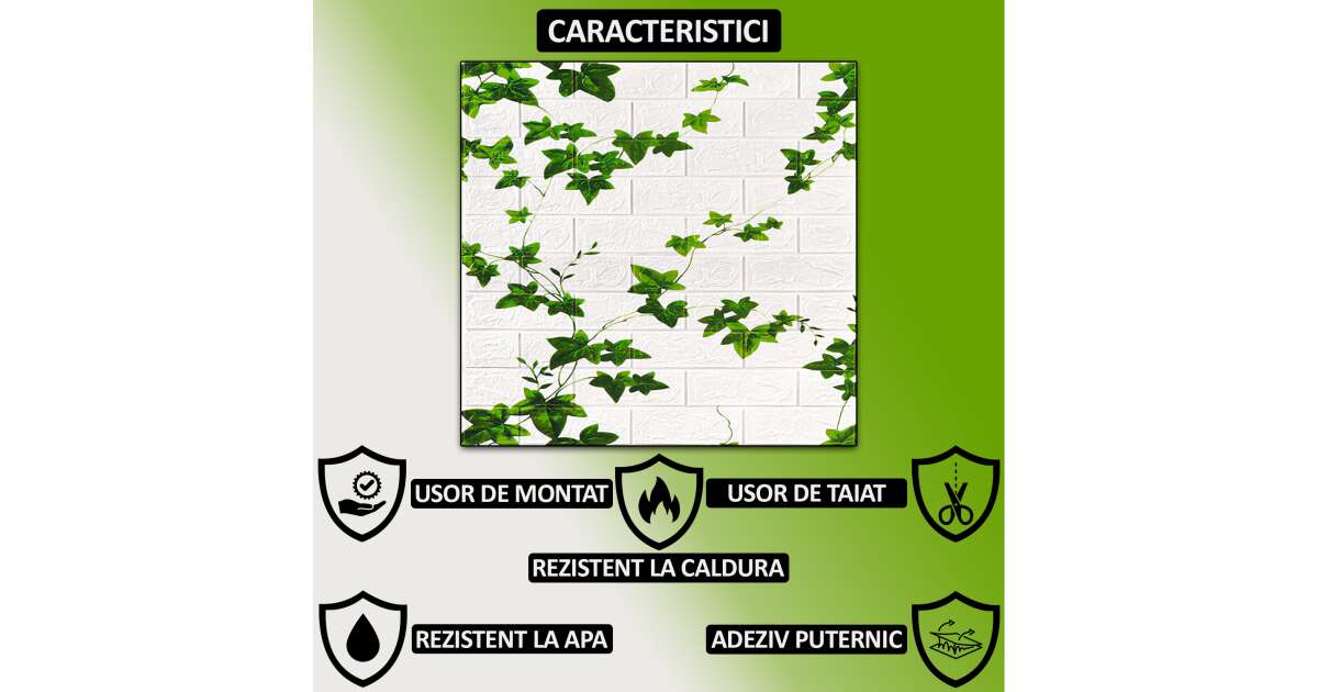 Ezt a terméket így is ismerheted: 10 db öntapadós 3D tapéta NEXTLY, mennyezetre/falra, tégla design, vízálló, állítható, erős ragasztó, könnyen felszerelhető, 5,3MP fedés, 70x77 cm, fehér, zöld levelekkel, kód 81.