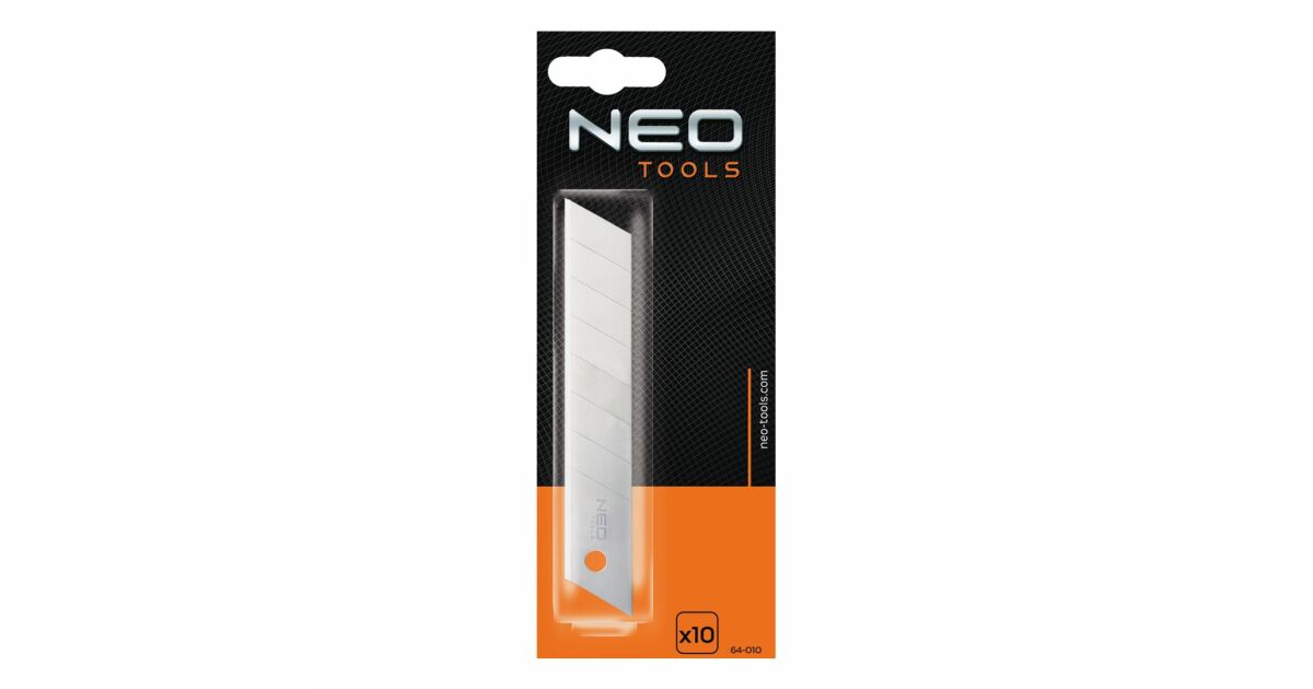 10 db NEO Tools 64-010 törhető pengét egy praktikus csomagolásban.