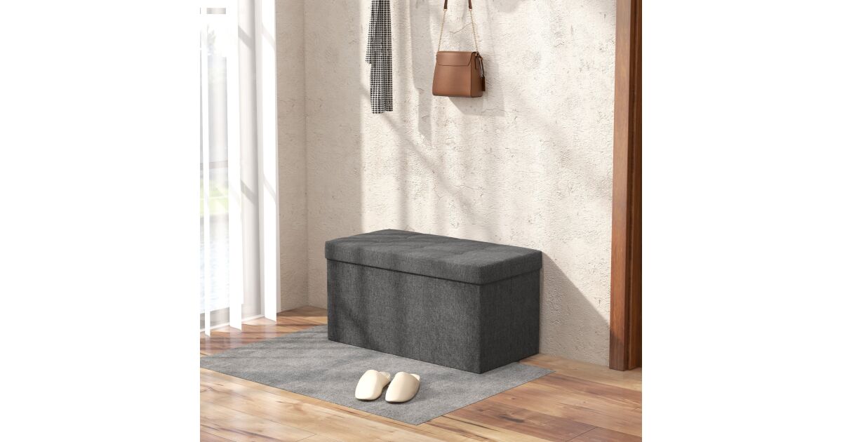 HOMCOM 84L Összecsukható Tárolódoboz Pad, Ágypad Fedéllel és Textil Huzattal, 76x38x38 cm, Sötétszürke leírása