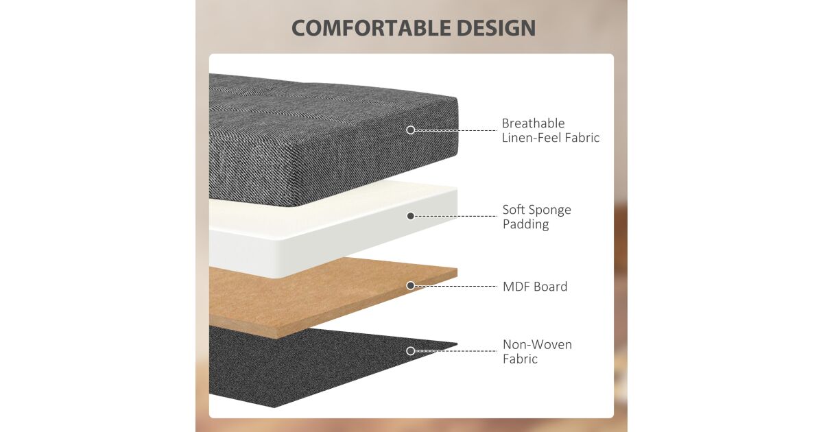 - Kényelmes ülőfelület: A vászonhatású szövet és a vastag szivacs biztosítja a kényelmes ülést. 🛋️