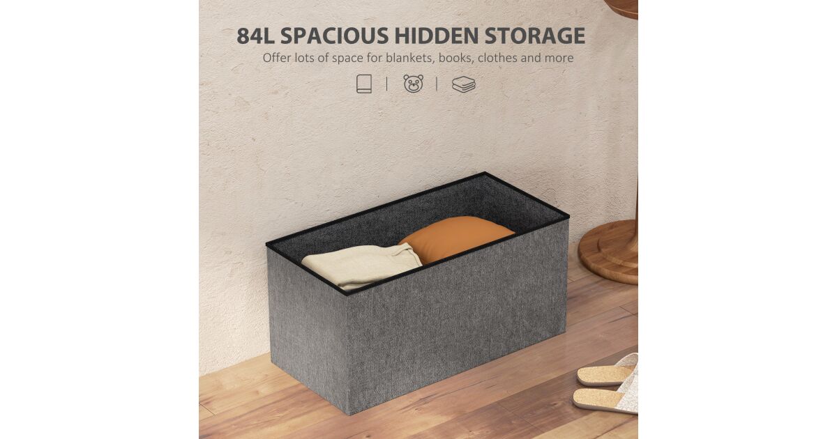 Ezt a terméket így is ismerheted: HOMCOM 84L Összecsukható Tárolódoboz Pad, Ágypad Fedéllel és Textil Huzattal, 76x38x38 cm, Sötétszürke