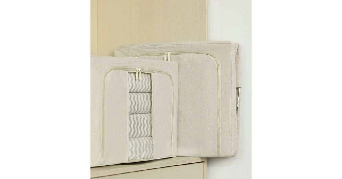 Ezt a terméket így is ismerheted: Összehajtható tárolódoboz, Flippy, ablakkal és dupla cipzárral, 66 l, prémium textil, 50x40x33 cm, fém keret, vízálló, texturált fehér