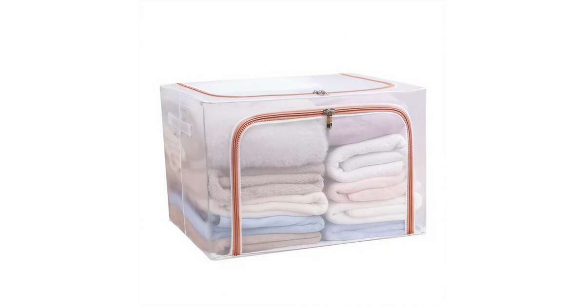 Összehajtható tárolódoboz, Flippy, ablakkal és piros dupla cipzárral, 66 L, Textil, 50x40x33 cm, Fém keret, Vízálló, Átlátszó vélemények