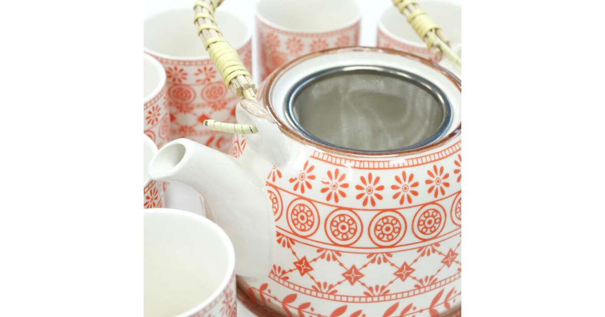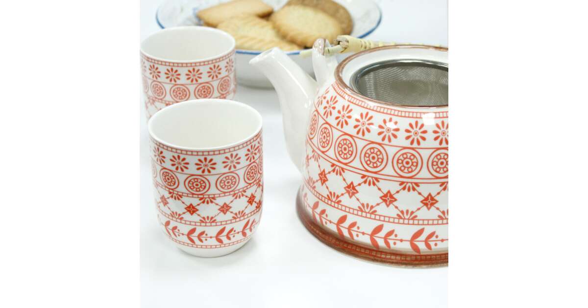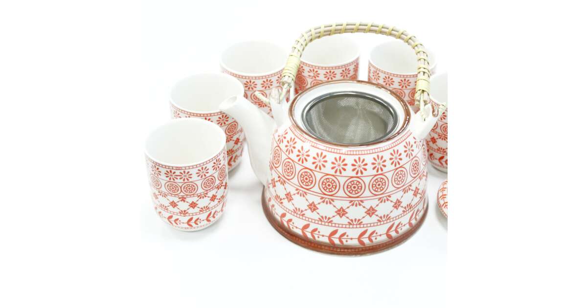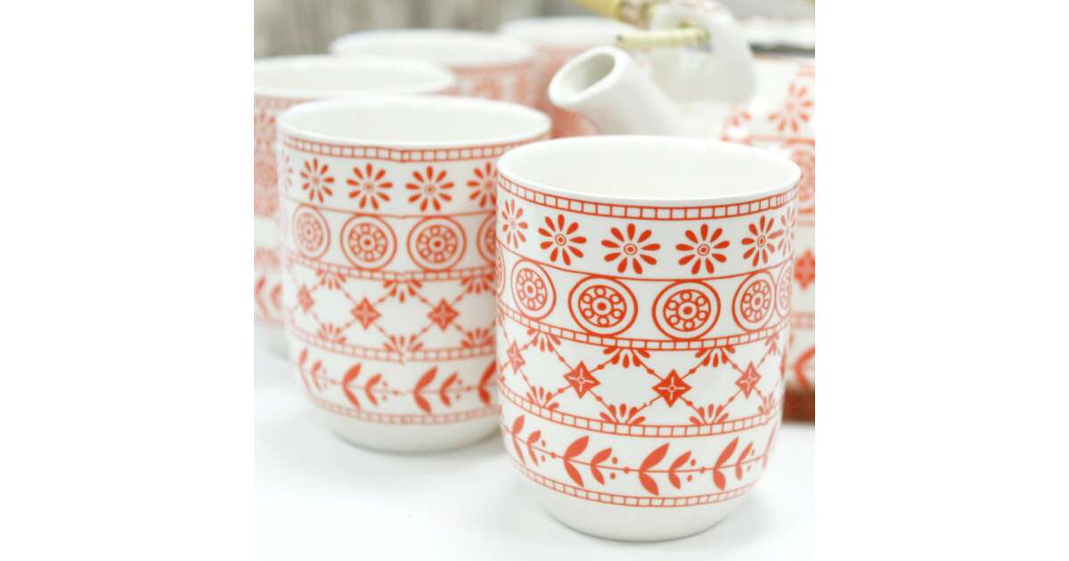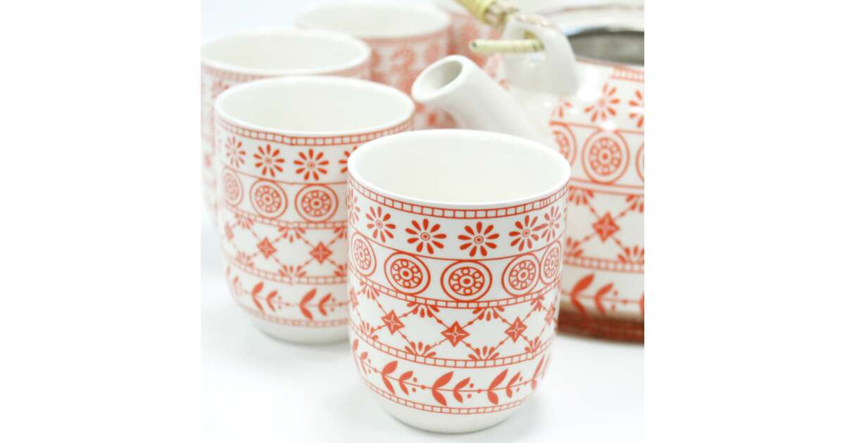 - Elegáns kínai stílus: A piros-fehér minta feldobja a teázás élményét.