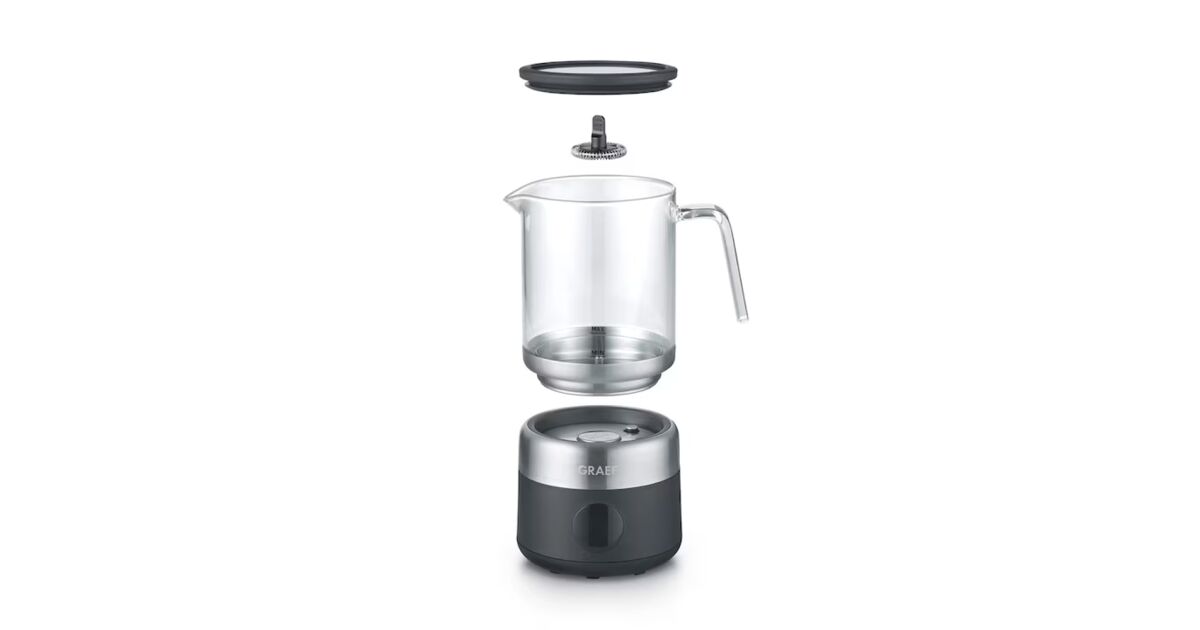 Graef tejhabosító, max. 500 ml űrtartalom, üveg tartály, 250 ml tejhab, 5 funkció, hideg vagy meleg tejhab, automata kikapcsolás, digitális kijelző, program kijelzés, érintőképernyős vezérlőp